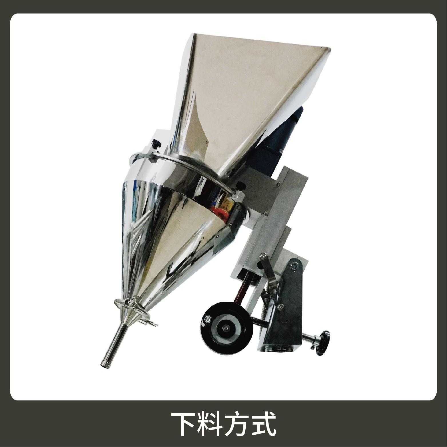2、調(diào)試方便、占用空間小。包裝流程全自動,無需人工操作。可根據(jù)充填物料的性質(zhì)選配不同的下料結(jié)構(gòu)。