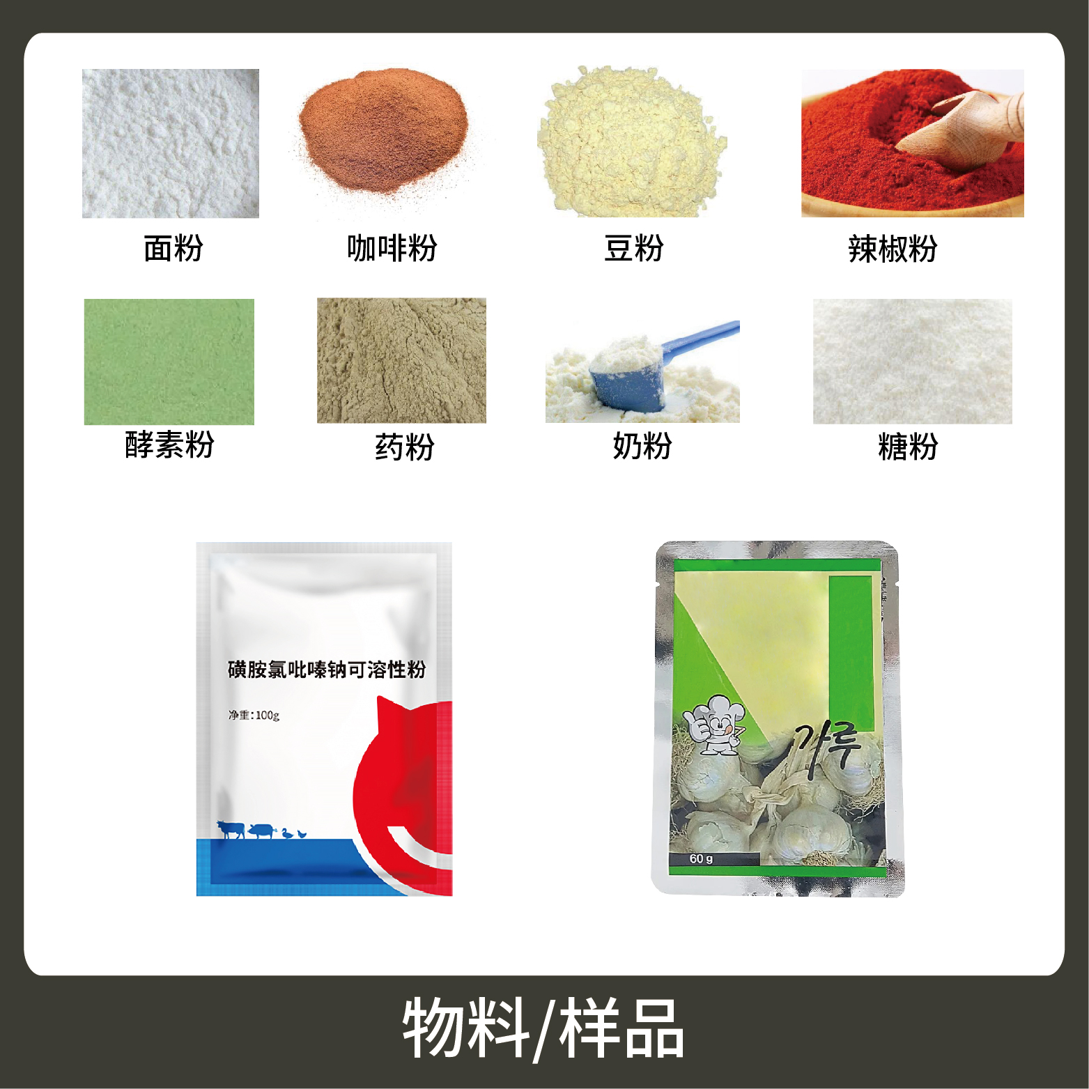 1、適用于食品、醫(yī)藥、化工、化妝品行業(yè)中顆粒、粉劑、液體、醬料等物品的計量包裝,如:調(diào)味粉、蛋白質(zhì)粉、營養(yǎng)粉等。